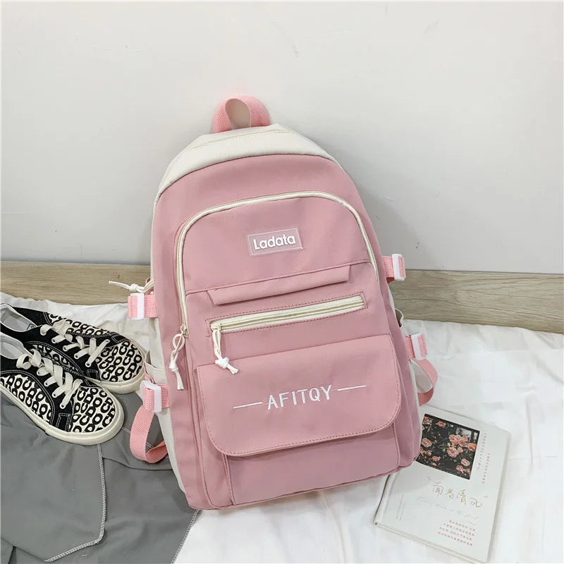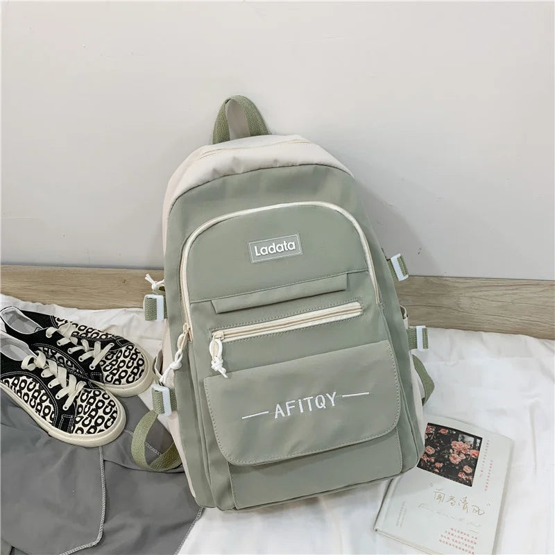 This women middle school backpack is made of nylon with multiple pockets for organizing your essentials. It features a panelled design suitable for laptops.