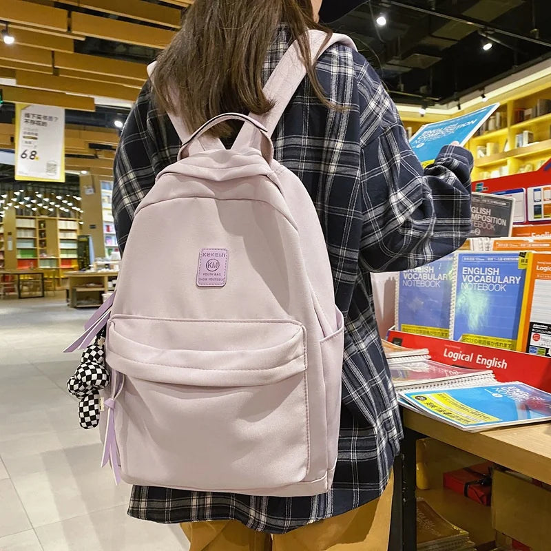 This nylon backpack is designed for female students with a spacious capacity. It's lightweight and ideal for various outdoor activities.
