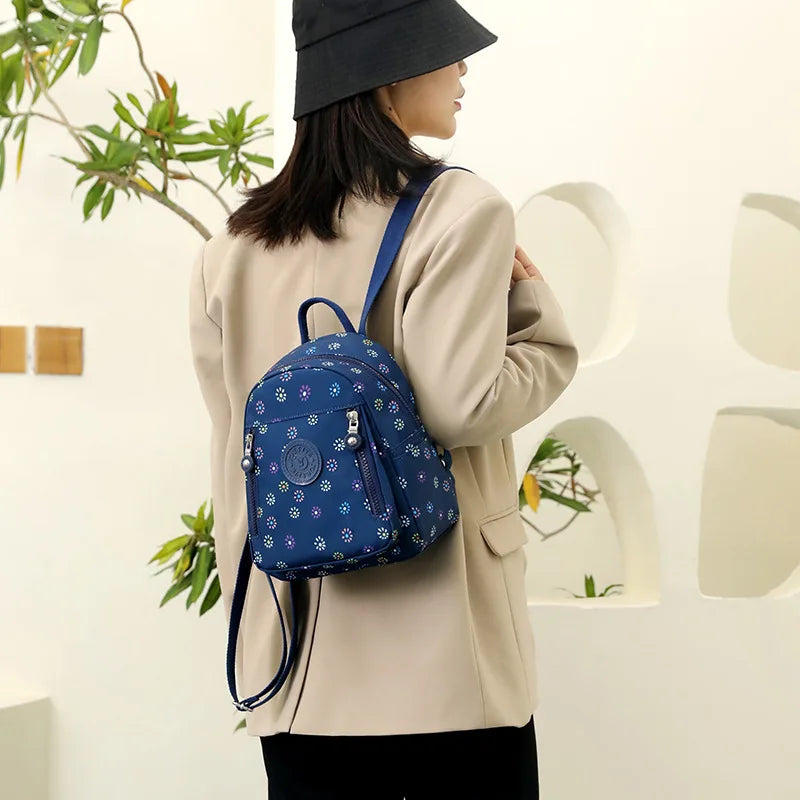 This small nylon backpack is perfect for women on the go. It's waterproof and designed to be comfortable for everyday use.