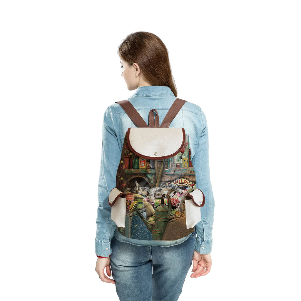 Oil Painting Cat Print Women's Backpack High Capacity Linen Backpack