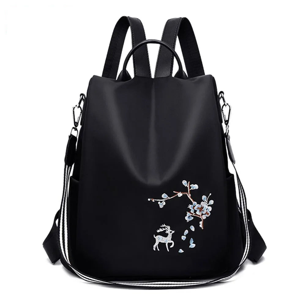 This stylish backpack is perfect for school, travel, or casual outings. It features an intricate embroidery print and anti-theft design to keep your belongings secure.