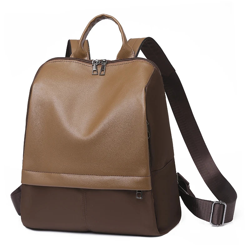 Panelled Backpack Women Preppy Style School Bags for Girls PU Leather Backpacks