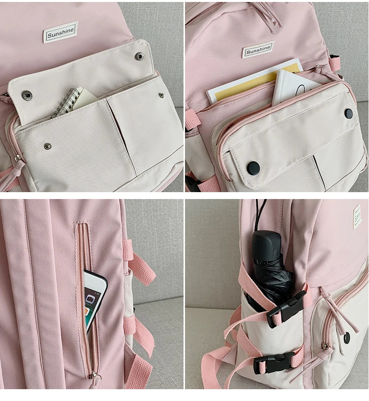 Panelled Women Backpack Harajuku Student Canvas School Bag Girl Travel