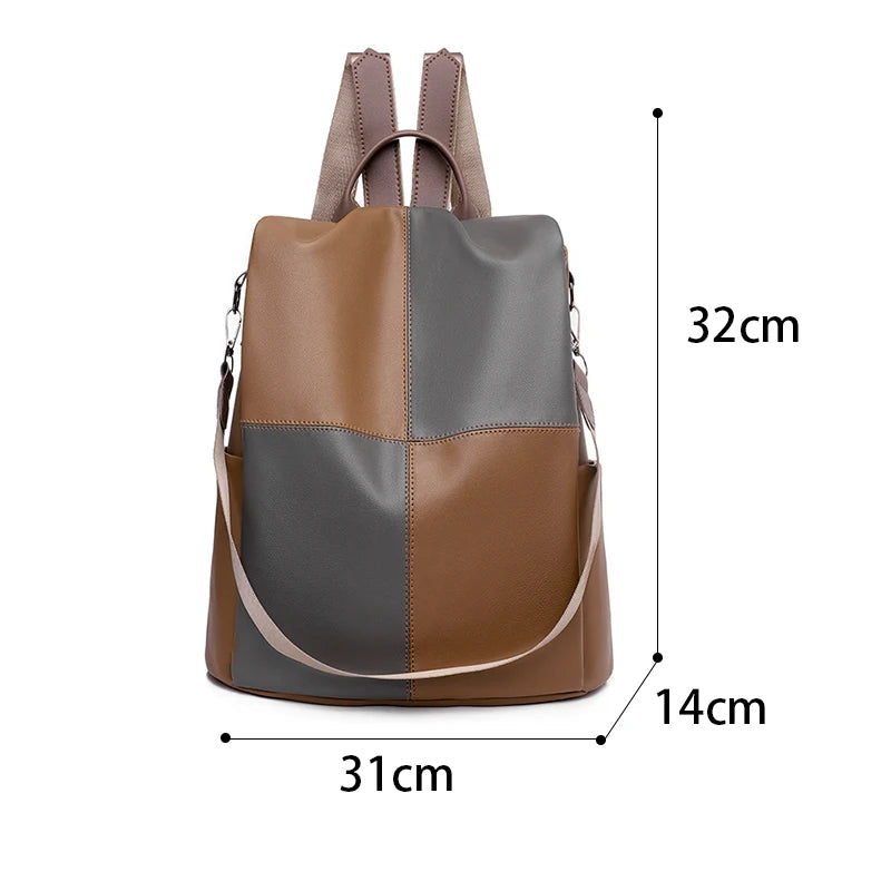 Stay stylish and organized with this patchwork women backpack made of high-quality PU leather. It's waterproof and features anti-theft design.