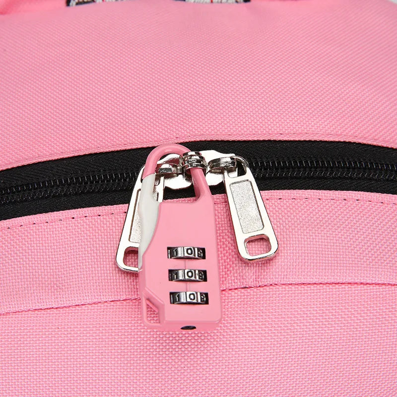 This pink canvas backpack is perfect for teenage girls with its preppy style design. It has a large capacity, making it ideal for school or daily use.