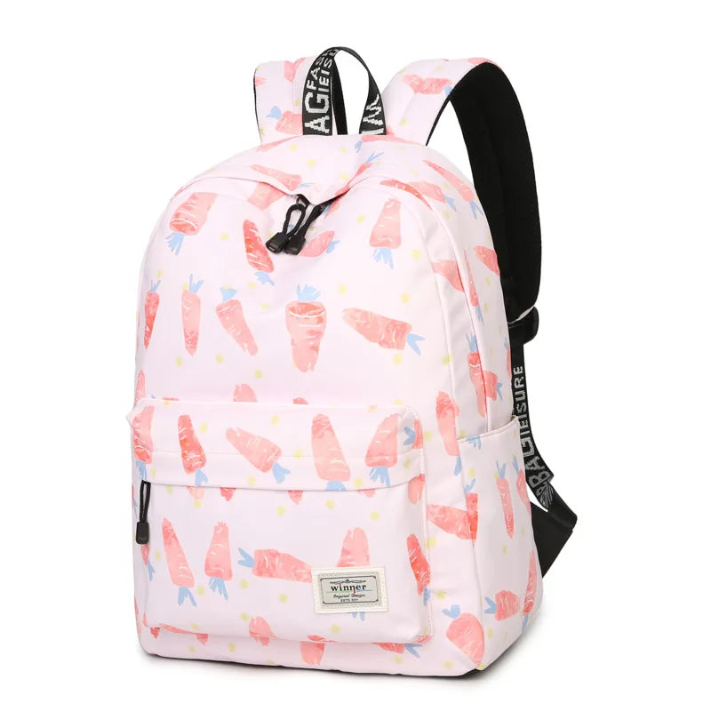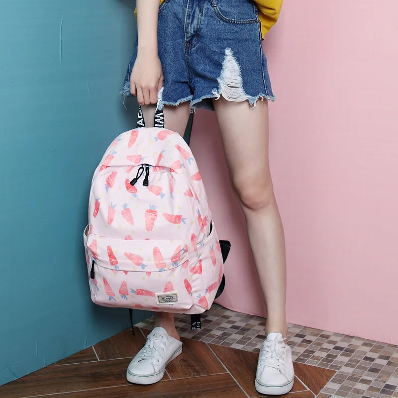 Pink Carrot Printing Backpack Women Waterproof School Bag