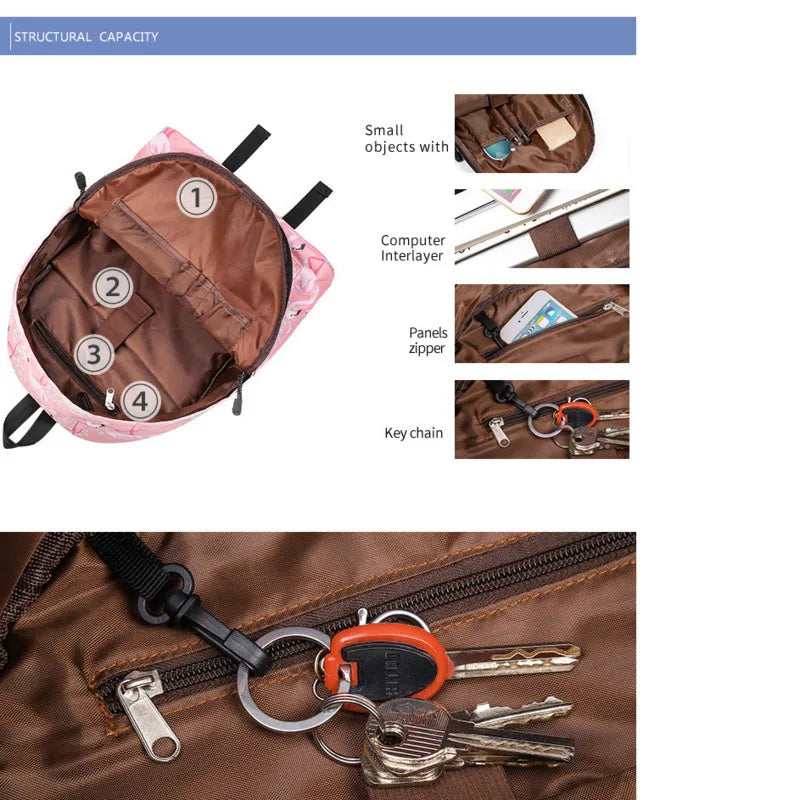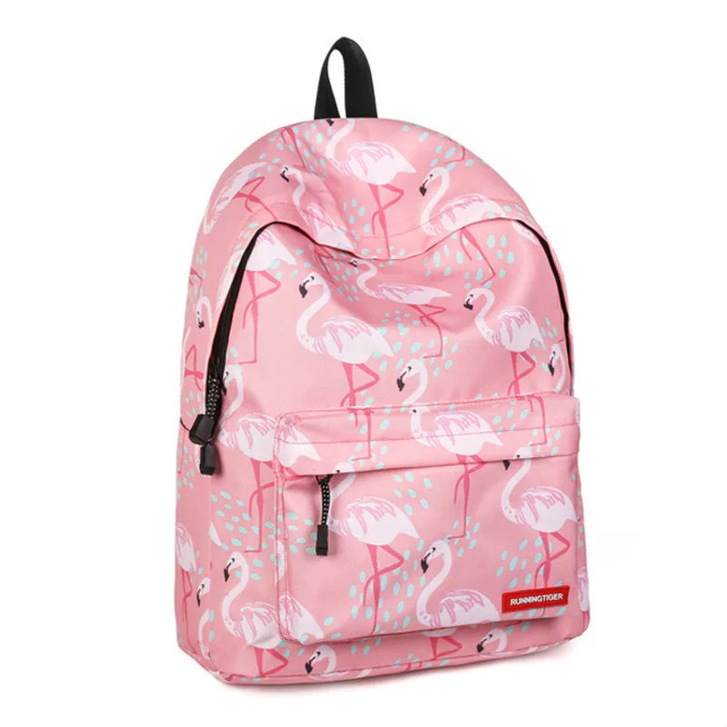 Pink Flamingo Printed Nylon Women Backpack for Teenage Girls