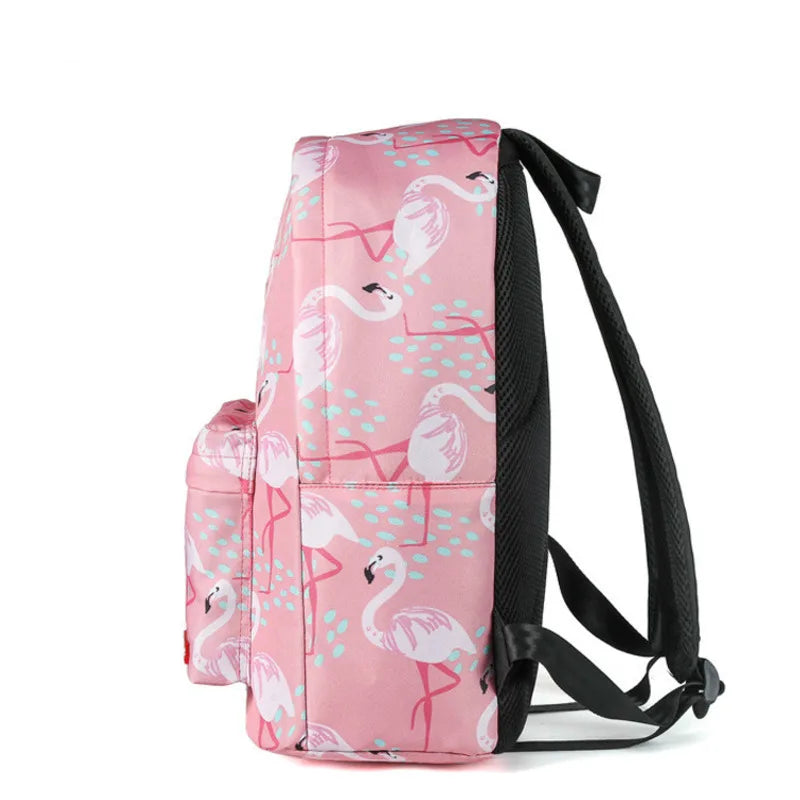 This stylish backpack features a fun pink flamingo print, making it perfect for school, travel, and everyday use. The durable nylon material ensures long-lasting quality.