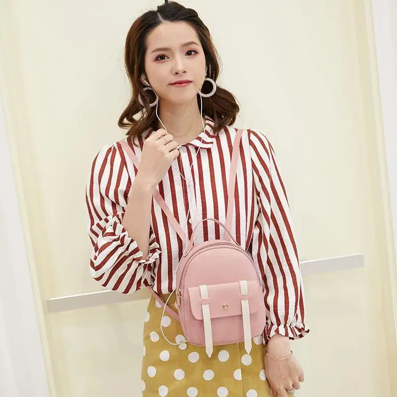 Pink Mini Crossbody Backpack for Women, Stylish Girls School Bag