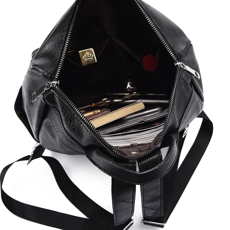 Plaid Leather Backpack Women's Multifunction Travel Bag