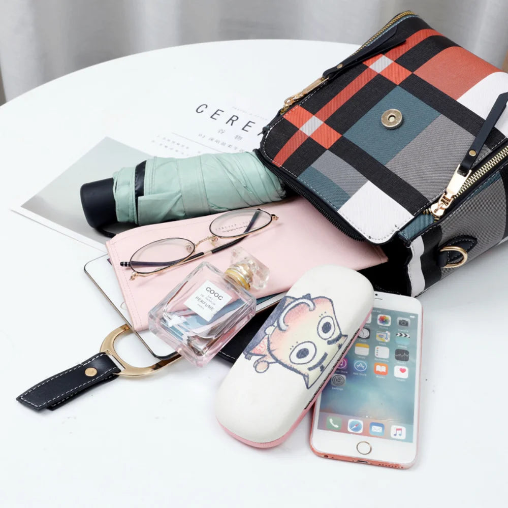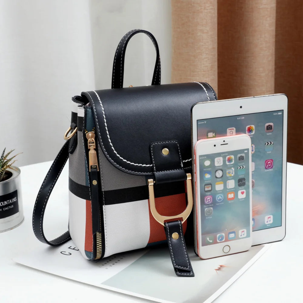 Plaid PU Leather Backpacks Women Convertible Backpack Crossbody Bag