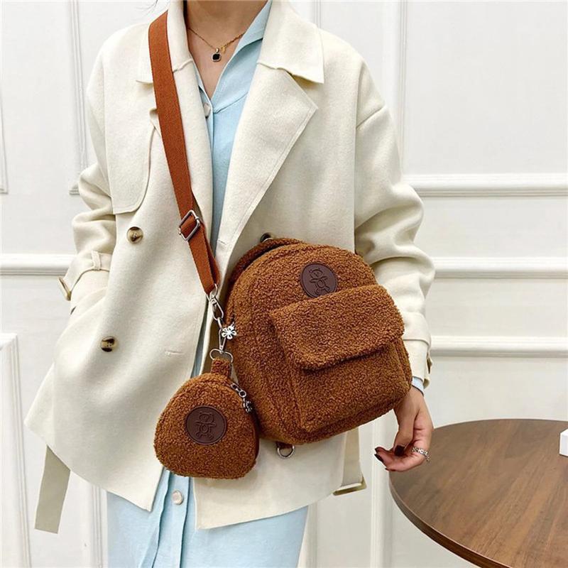 Plush Mini Backpack Lightweight Lamb Wool Bear Crossbody Bag
