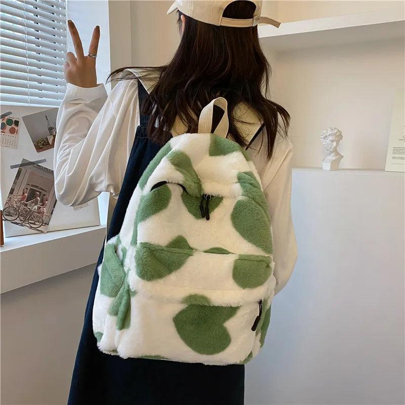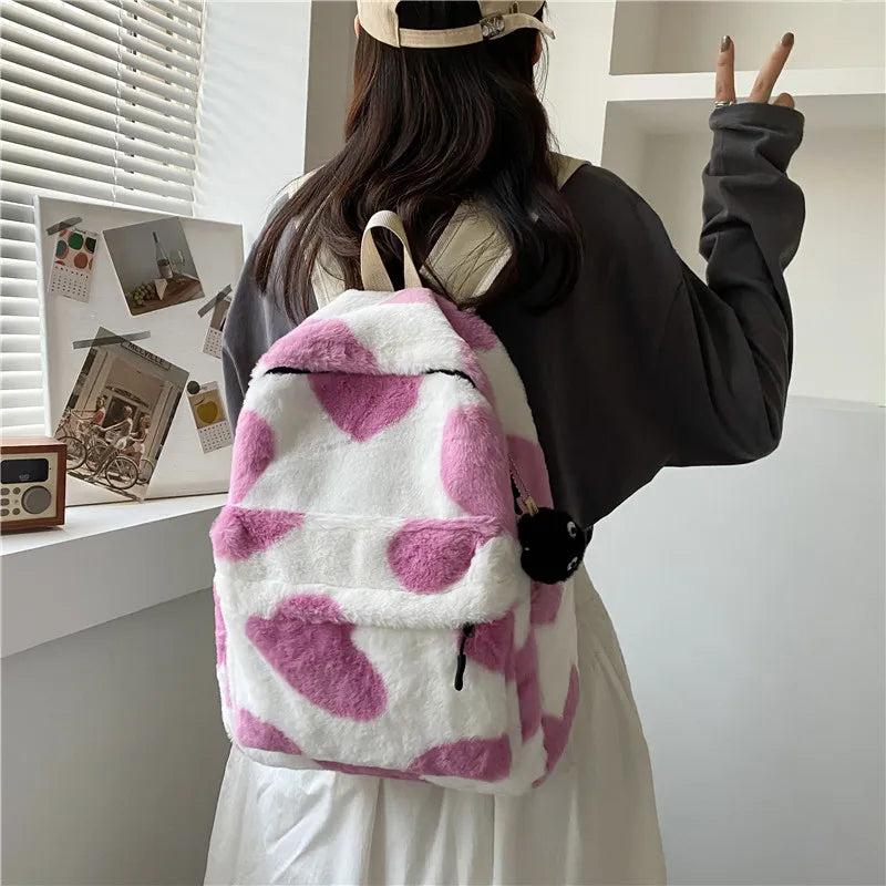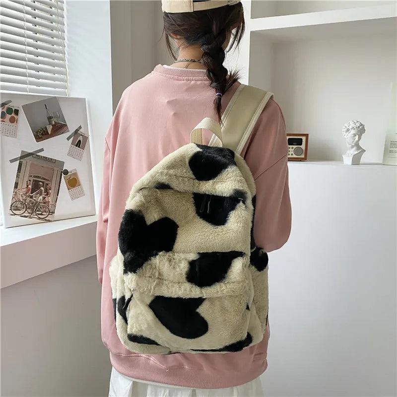 This cute small backpack is perfect for college students, made of soft plush material. Ideal for travel, school, or daily use.