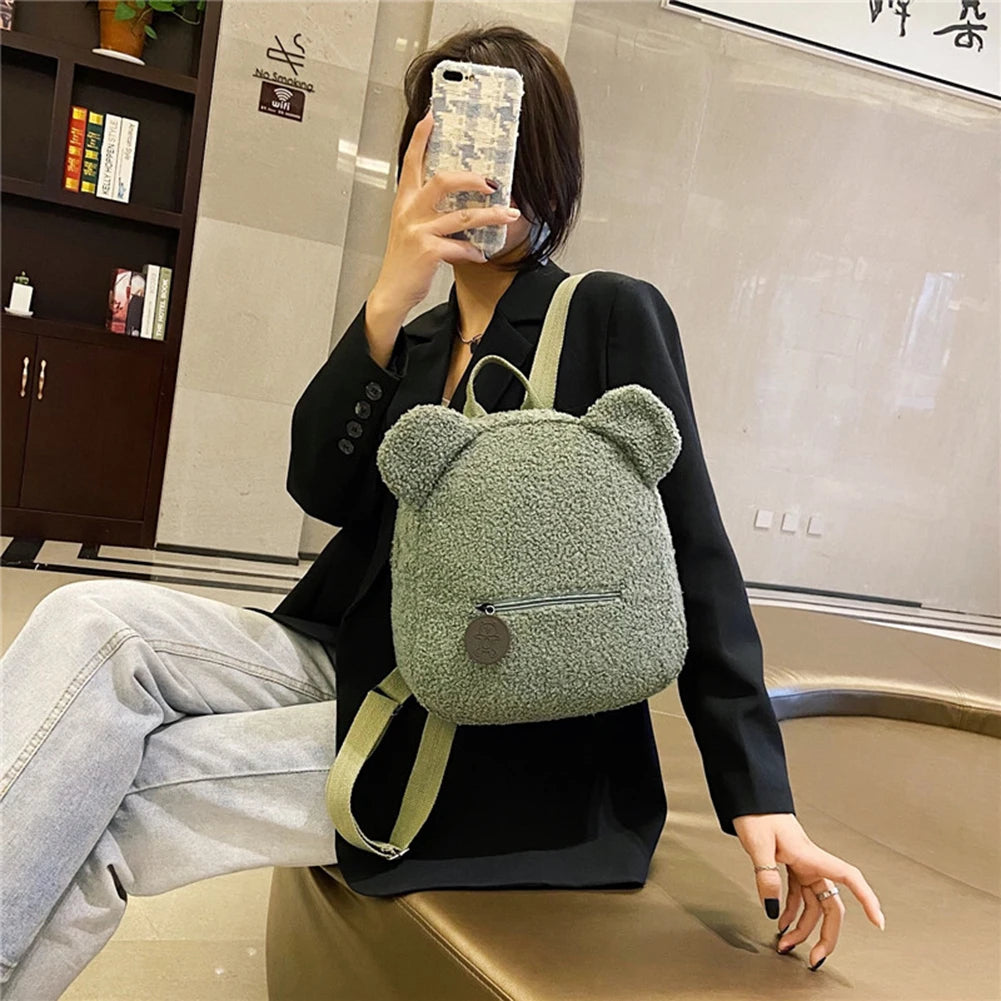 Stay cozy and stylish with this bear-shaped shoulder backpack featuring lamb fleece. Perfect for autumn and winter travels.