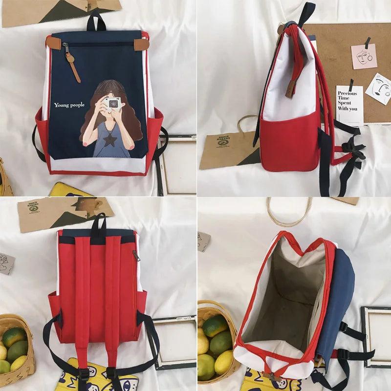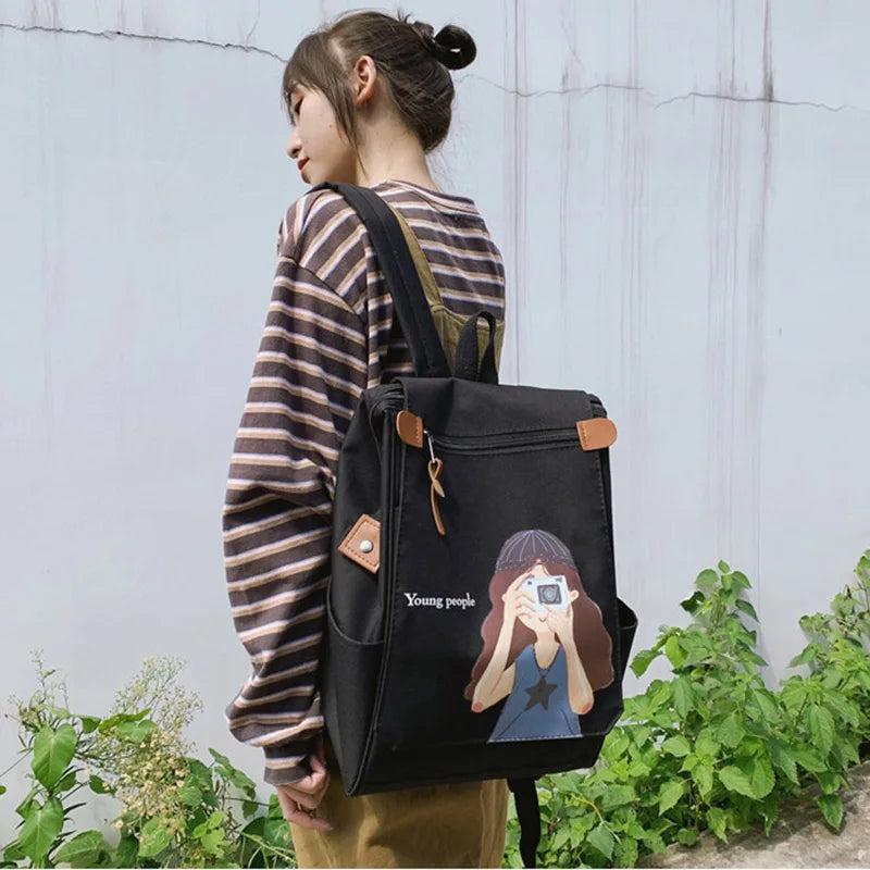 Stay stylish with this Harajuku female portable book bag that's perfect for high school, college, or leisure. It's a versatile travel backpack with a chic design.