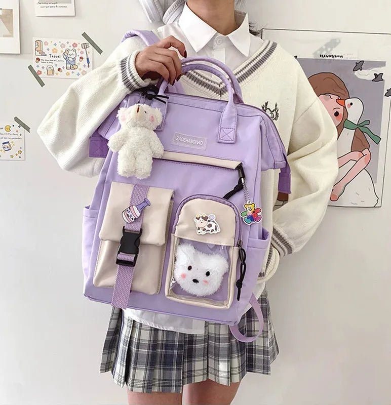 Stay stylish and organized with this preppy purple backpack, designed with waterproof material. Perfect for high school and everyday use.