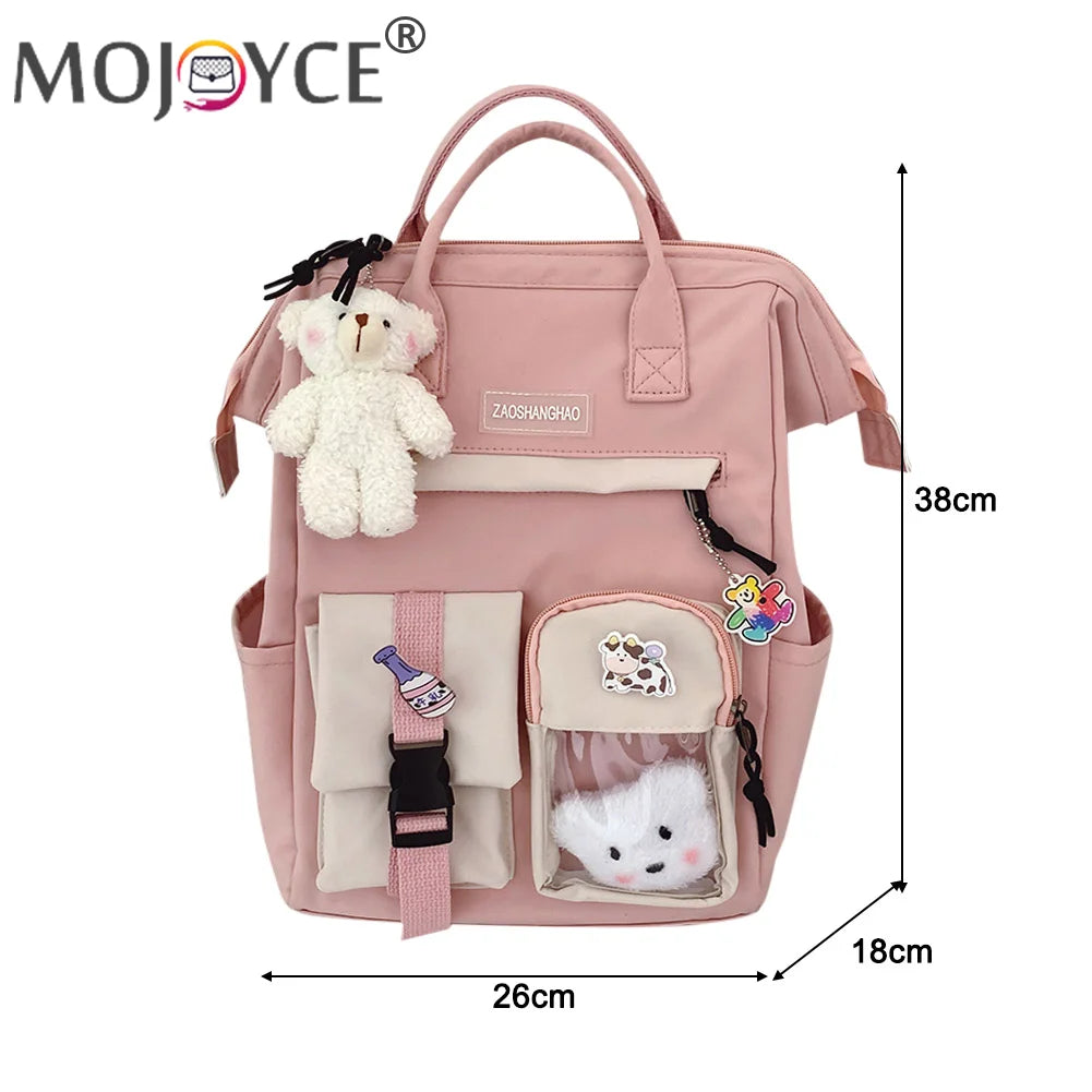 This Preppy Style Contrast Backpack is perfect for students with its large capacity. It's made of durable nylon material and features a cute badge bear design.