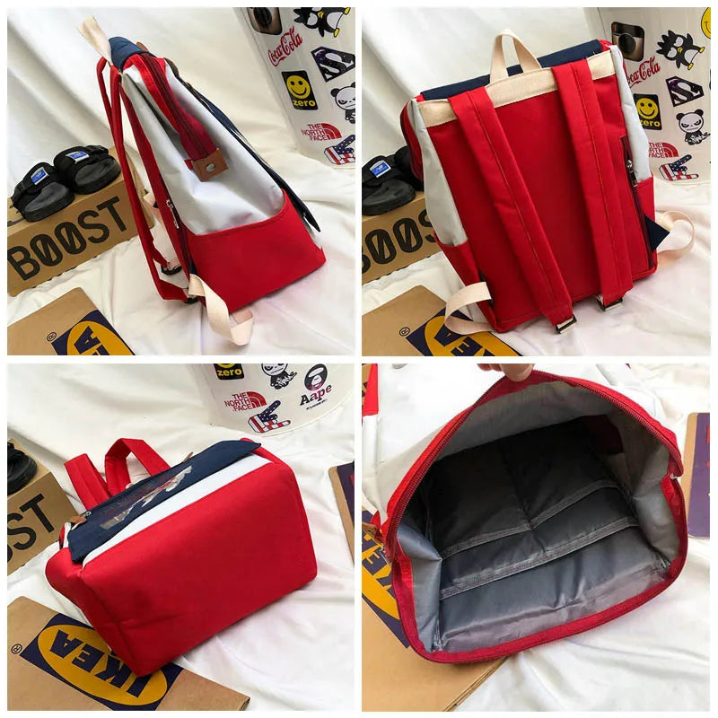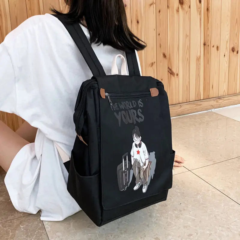 Preppy Women Student school bags Japanese Cartoon Anime Print Canvas backpacks