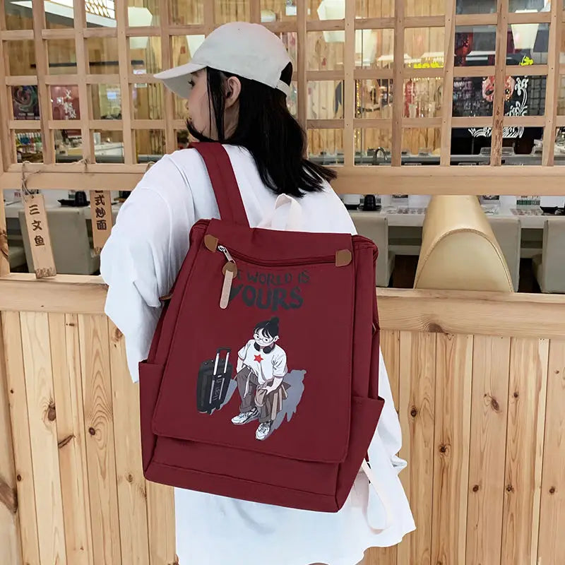 This backpack features a Japanese Cartoon Anime print on durable canvas, perfect for students and girls with its large capacity.