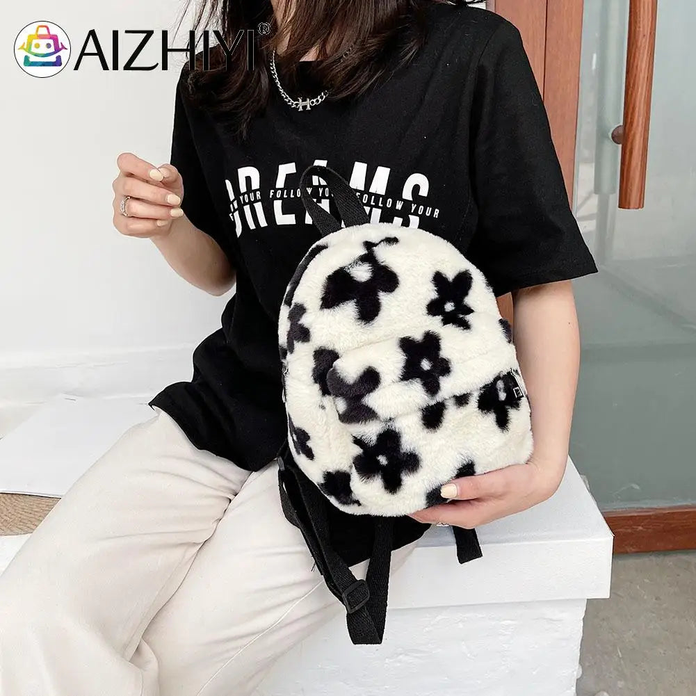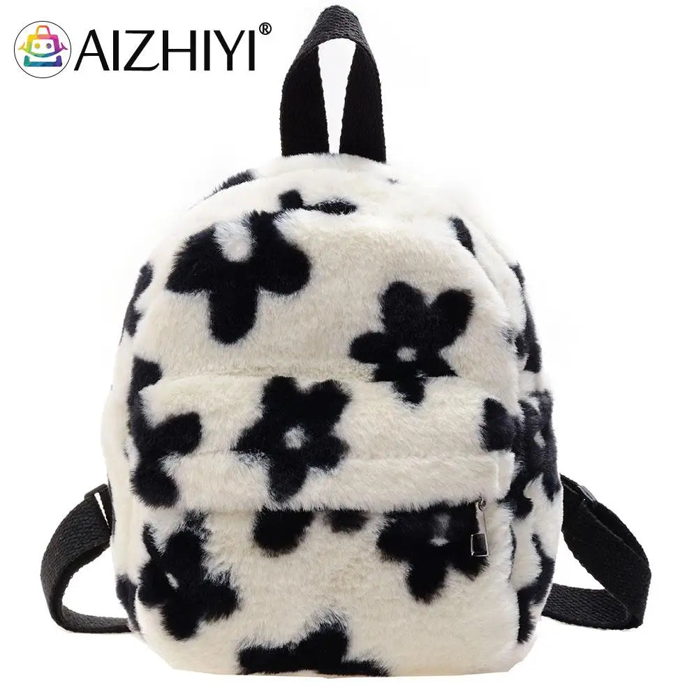 Printed Plush Backpack Casual Ladies Small Knapsack Mini Rucksacks