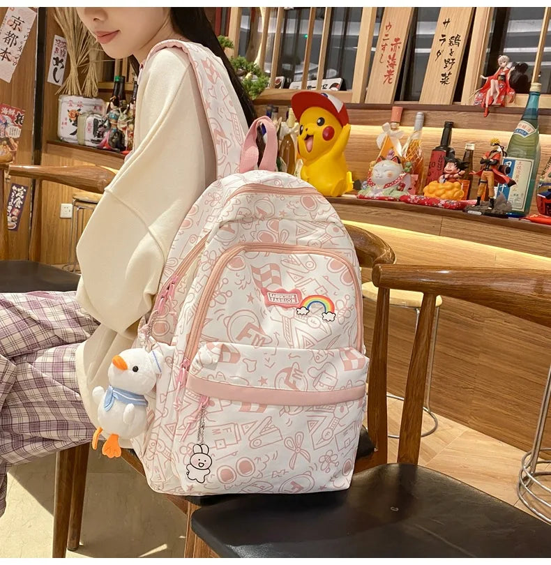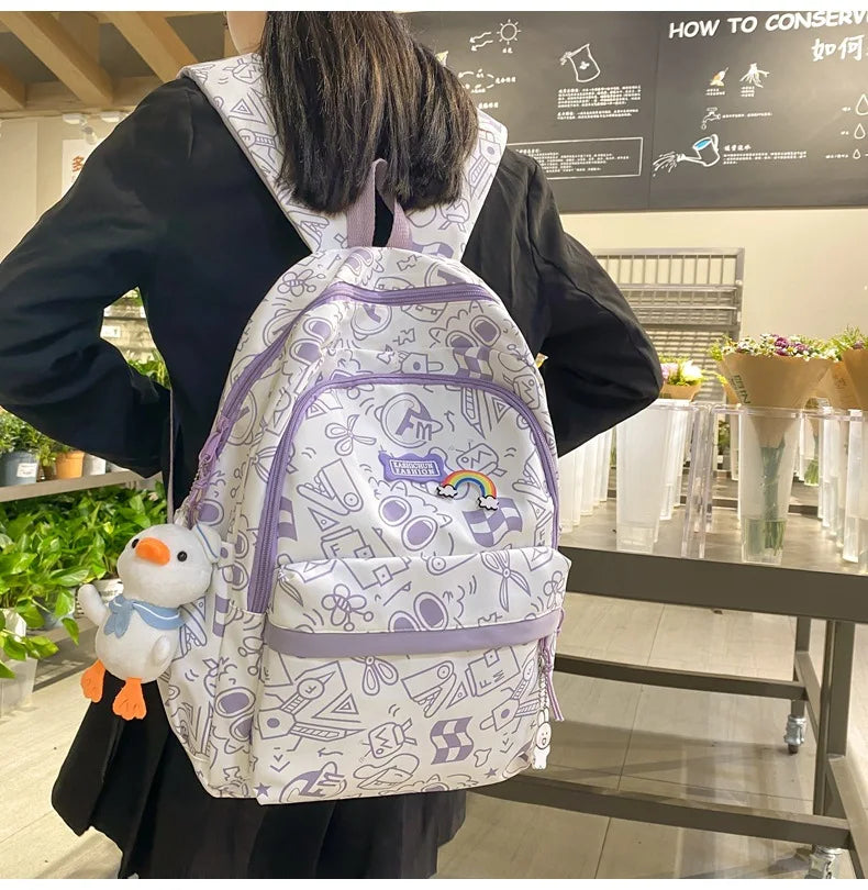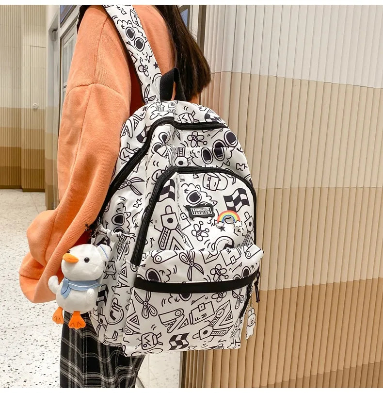 Description:This stylish backpack features a trendy print design and offers a spacious interior for all your essentials. Ideal for daily use or travel.Features: Fashionable printed nylon backpack for women Large capacity to store all your belongings Comfortable to wear with adjustable straps Perfect for daily use, school, work, or travel...