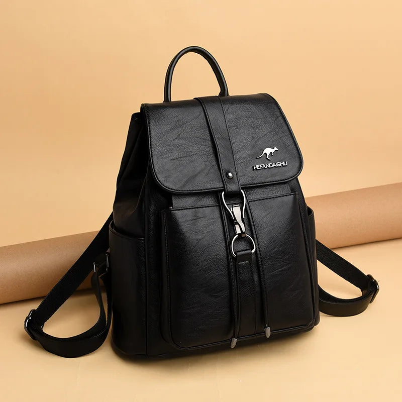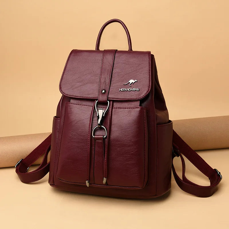 This women's backpack is made of soft leather and designed for casual occasions. It has a large capacity, anti-theft features, and is perfect for travel or as a school bag.
