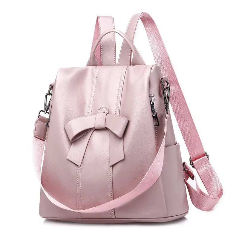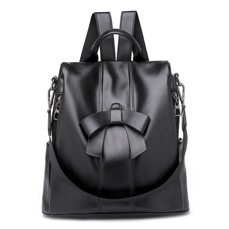 This PU leather backpack is perfect for ladies and teenage girls. It features a stylish bowknot design and offers ample storage space. Ideal for school or casual outings.