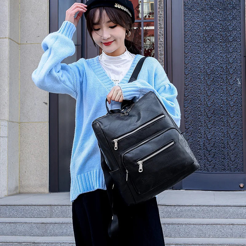 PU Leather Backpack for Women Waterproof Bagpack Anti-theft Travel Rucksack