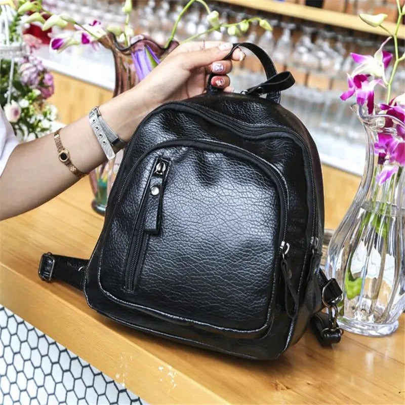 PU Leather Women Backpack Female Backpacks Small Zipper Bags