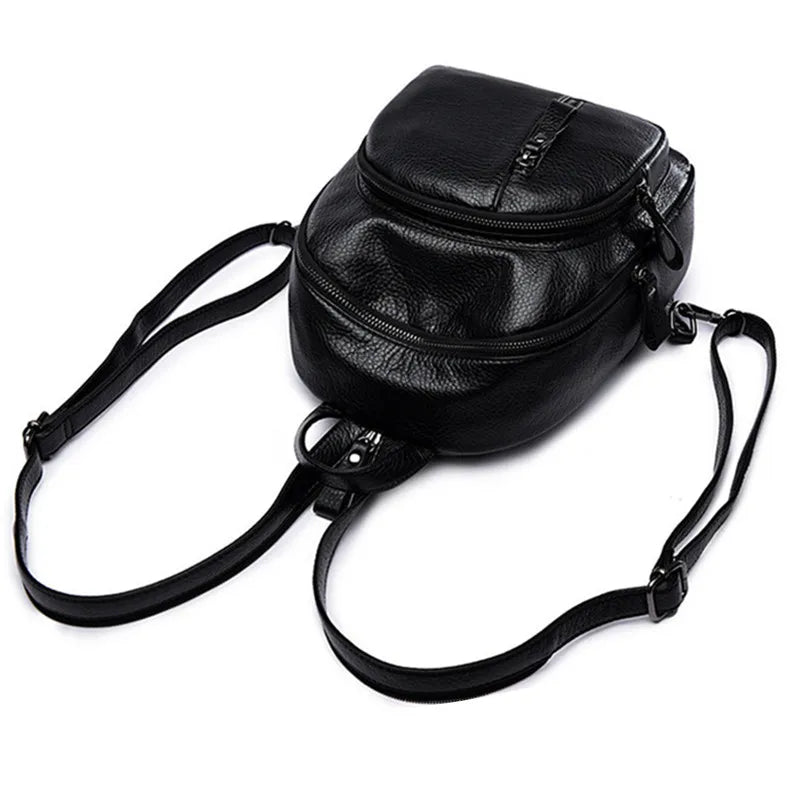 Stay stylish and organized with this PU leather women's backpack. Perfect for student use, it features small zipper pockets for easy access.