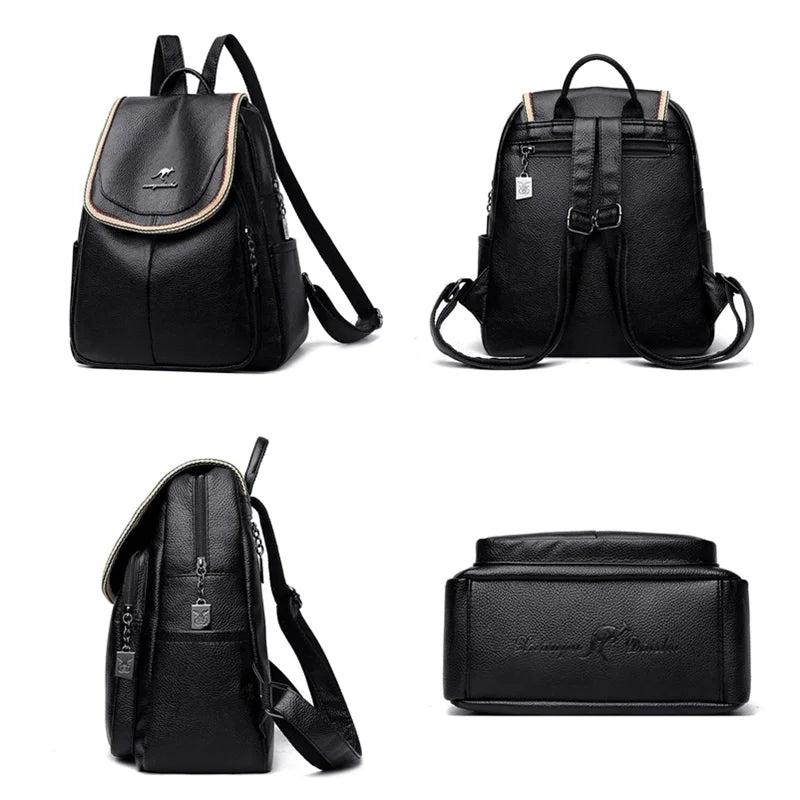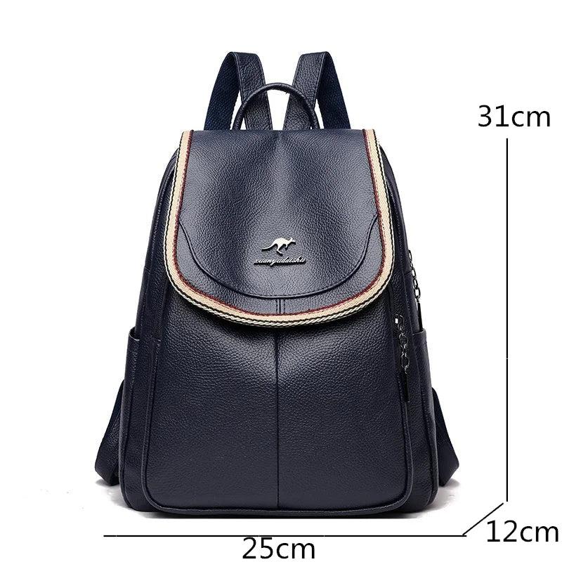 This women's backpack is made of high-quality PU leather, perfect for school and travel. It features a large capacity to store all your essentials.