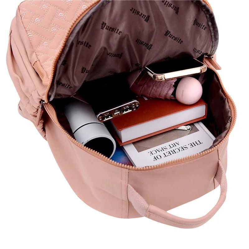 Stay stylish and organized with this high-quality women's backpack made of waterproof nylon fabric. Perfect for schoolgirls and teens.