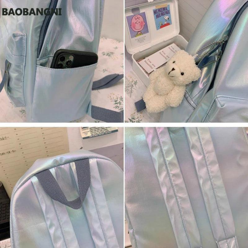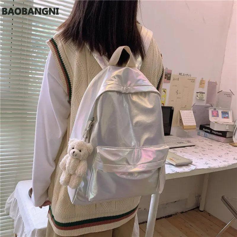 Reflective Girls Pink School Backpack Harajuku All-match Large Capacity PU Bag