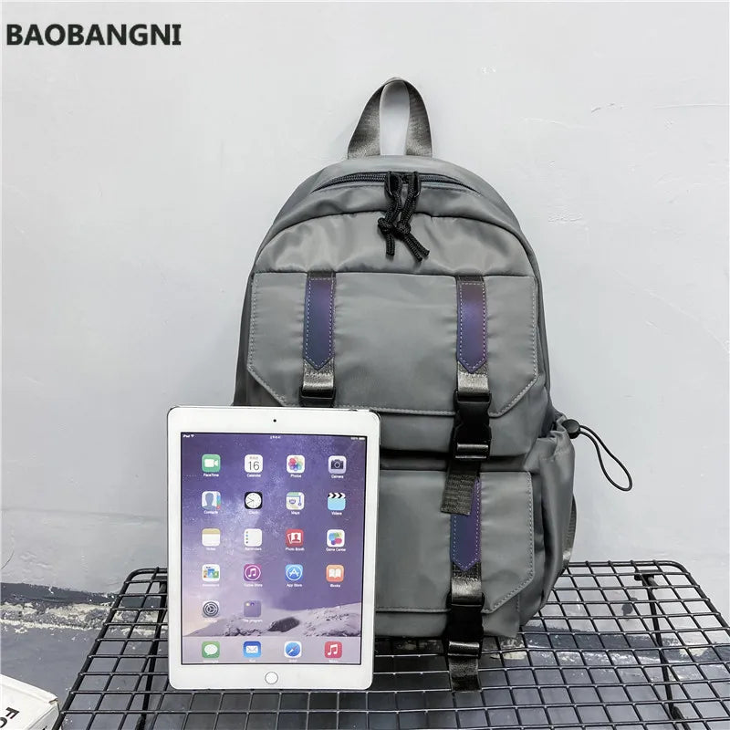 This stylish and durable backpack is perfect for teenagers, girls, boys, women, and men. It features a reflective strip and is made of high-quality nylon material.