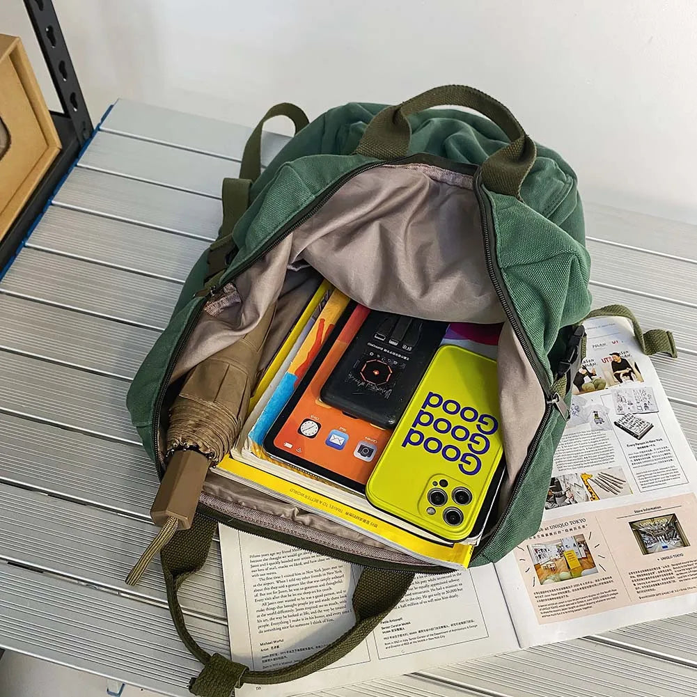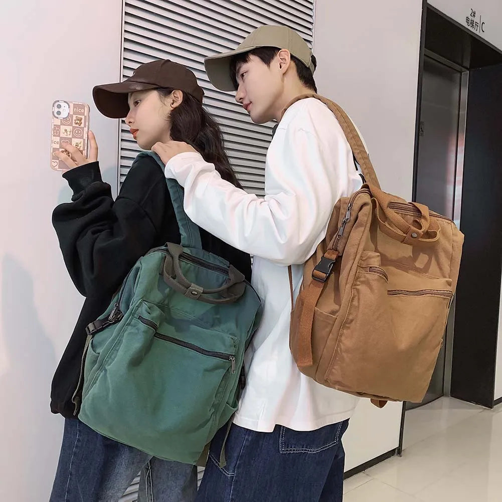 This retro canvas backpack is perfect for women and men. It has a large capacity, making it ideal for travel, school, or everyday use.