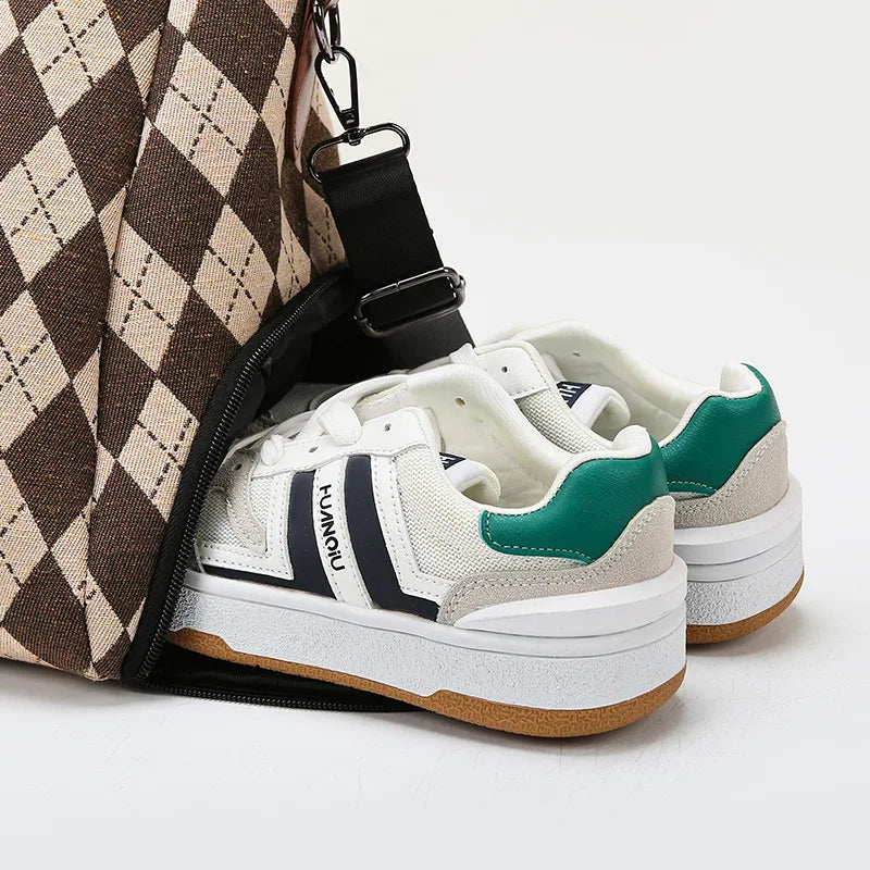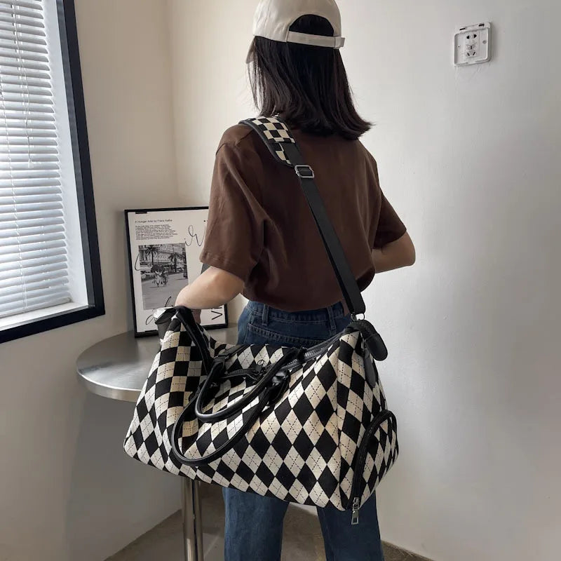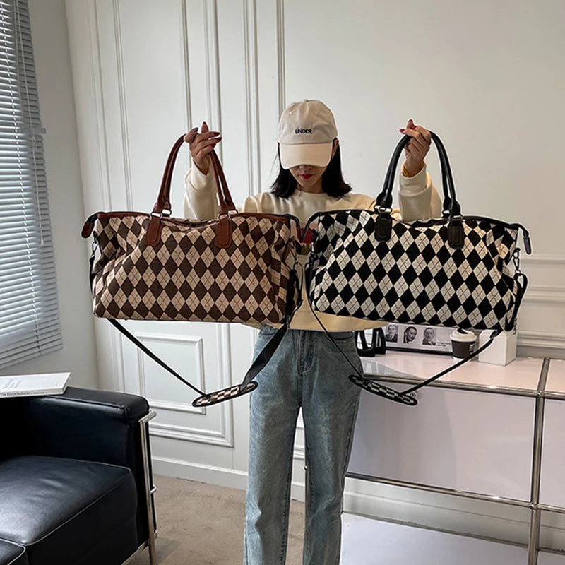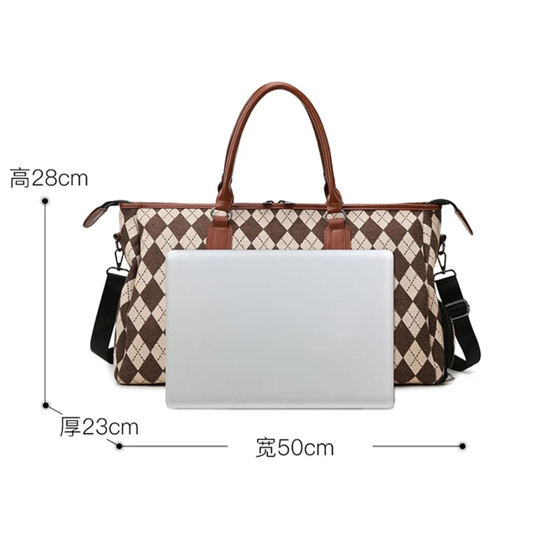 This women's travel bag is designed with a retro style and a casual shoulder strap. It offers a high-capacity storage solution suitable for daily use.