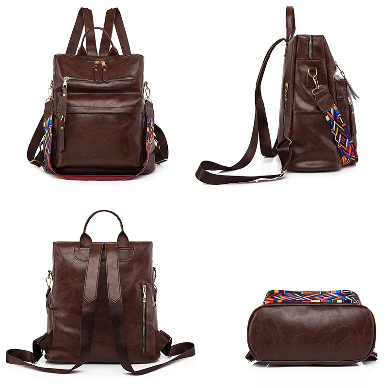 This vintage-inspired women's backpack is made of high-quality PU leather, perfect for travel, school, or everyday use. Features a wide shoulder strap for added comfort.