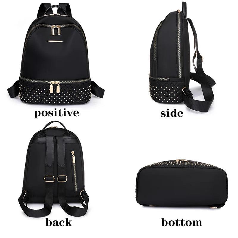 This stylish retro women backpack is made of high-quality Oxford cloth and features a rivet design with an anti-theft pocket. Perfect for everyday use.