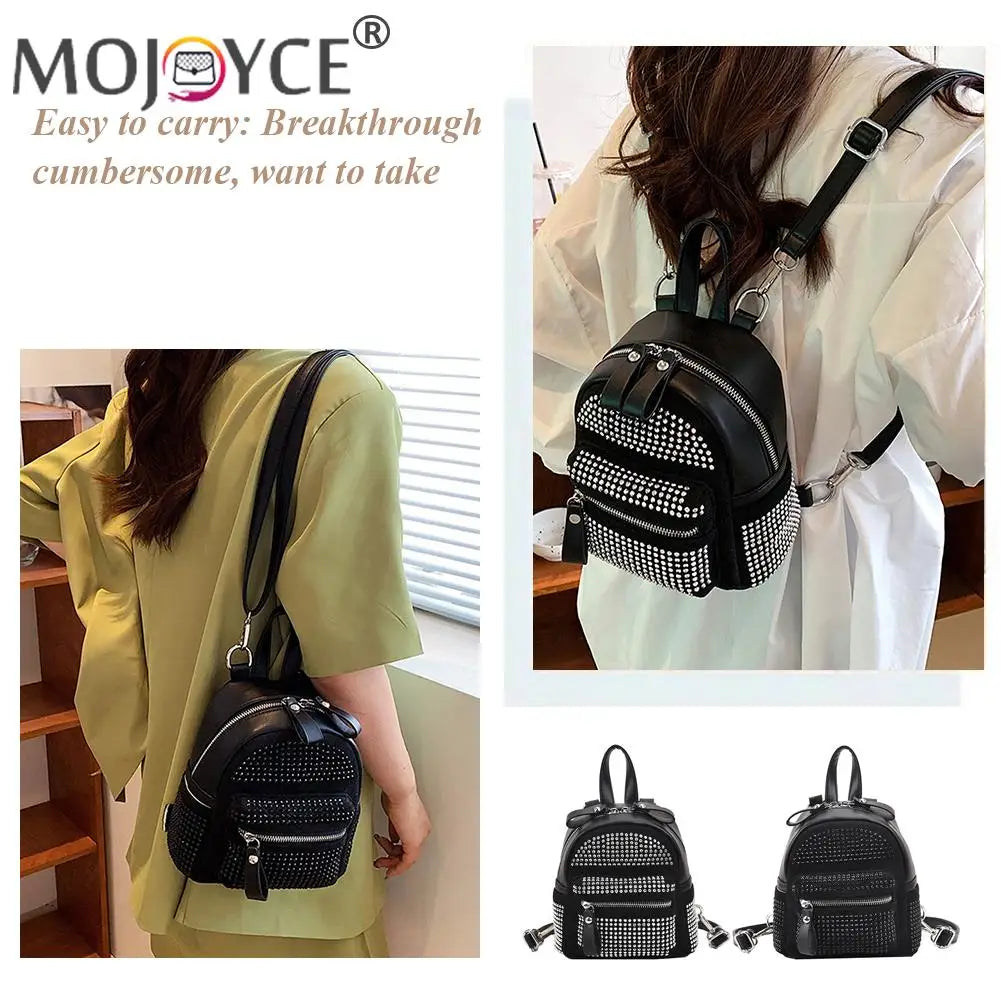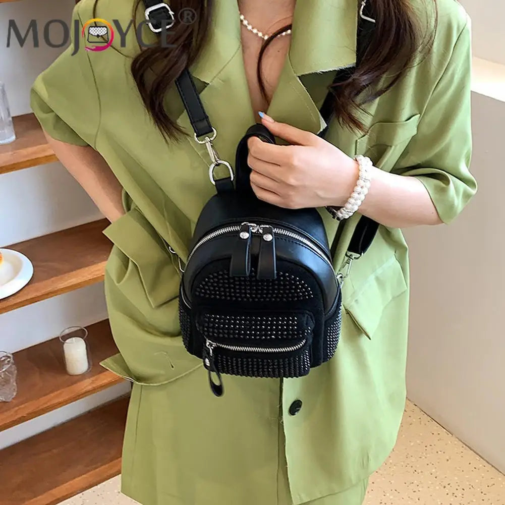 This small rhinestone backpack is perfect for women who want to add some sparkle to their style. It's great for casual outings and school use, providing a convenient storage tote.