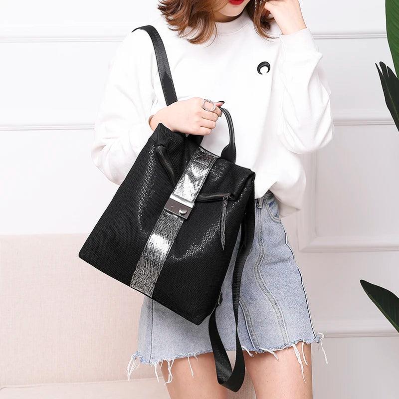 This stylish backpack is perfect for women on the go. Made from durable Oxford cloth, it features a sequin design that adds a touch of glamour to your everyday look.