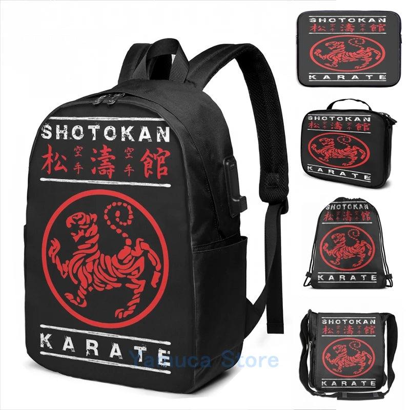 Shotokan Karate USB Charge Backpack School Travel Laptop Bag