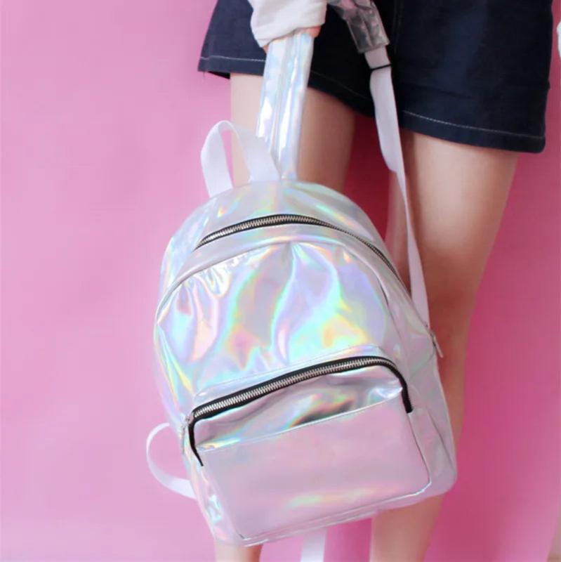 Silver Laser Backpack PU Leather Holographic School Bags for Girls