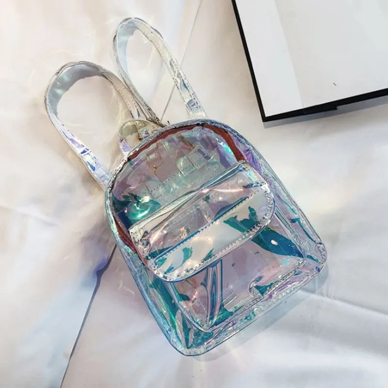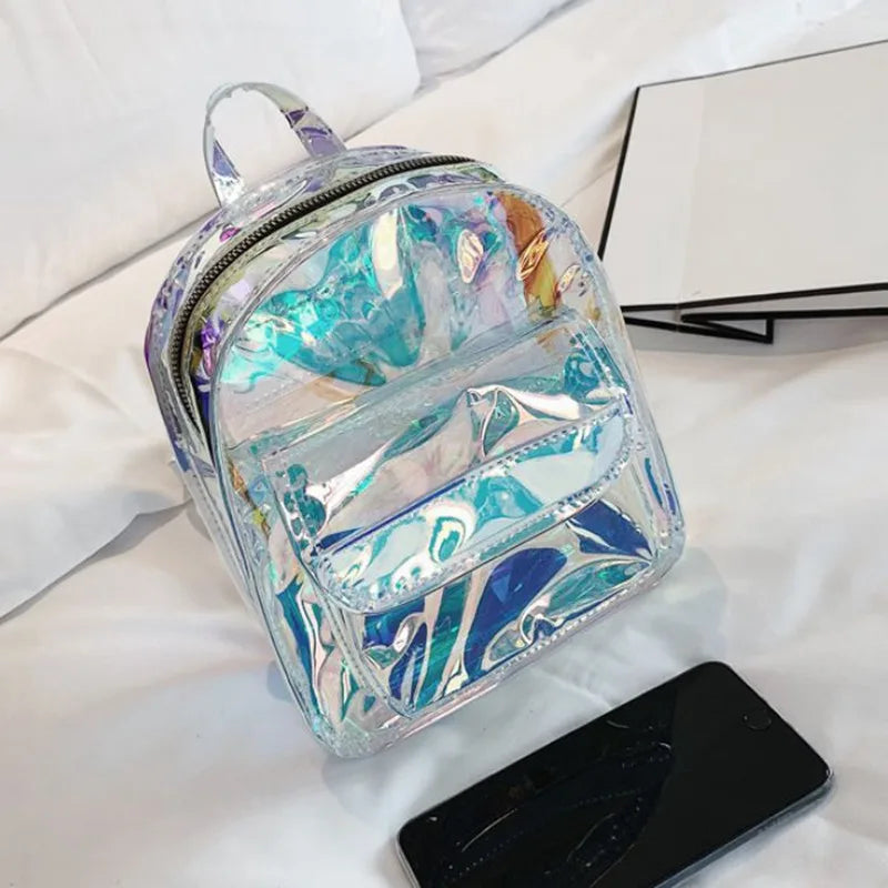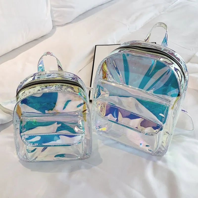 Silver Laser Backpack Women Girls Shoulder Bag PU Leather Holographic Backpack