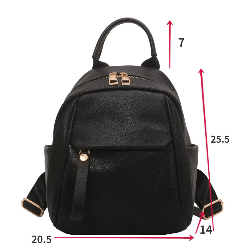 Small PU Leather Backpack Bags for Women Solid Travel Rucksack