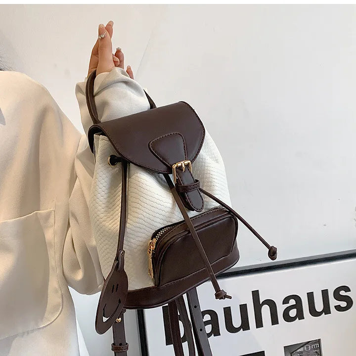 This stylish drawstring backpack is made of high-quality PU leather, perfect for teenagers and women. It can be used as a school bag, shoulder bag, or casual daypack.