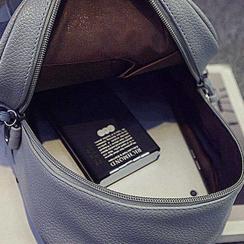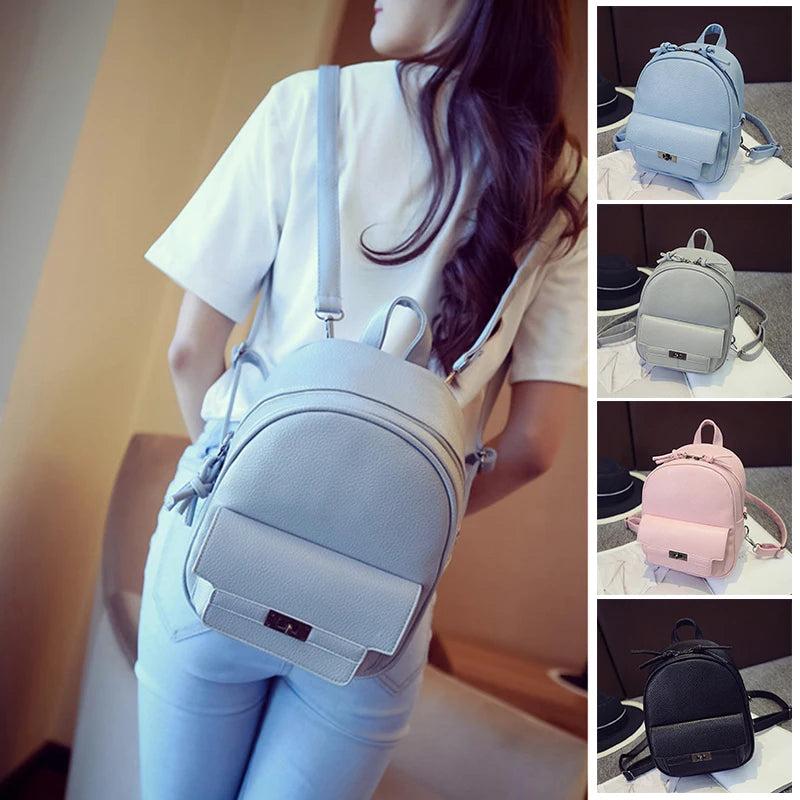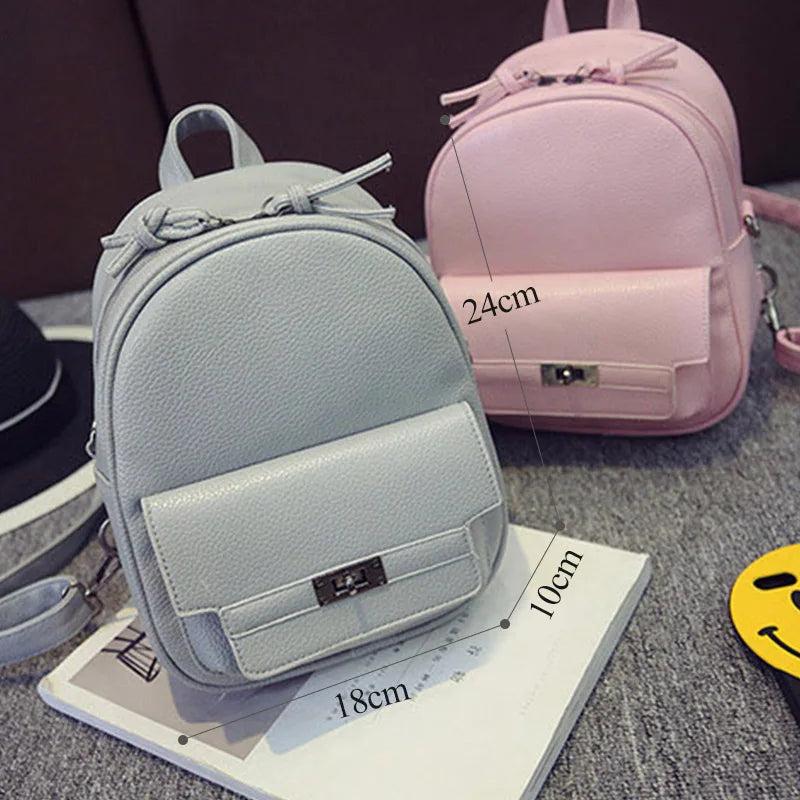 Small Solid Backpacks PU Leather for Teenage Girls Waterproof