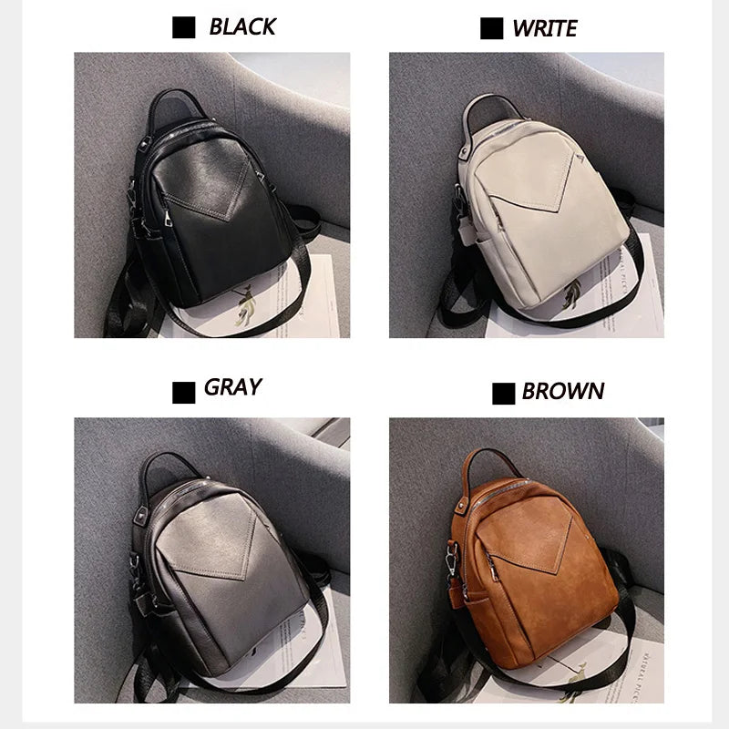 Small Women's Backpack PU Leather School Bag for Teenager Girls Daypack