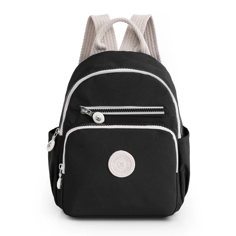 This small women's backpack is made of high-quality nylon, perfect for travel. It features anti-theft design to keep your belongings secure.
