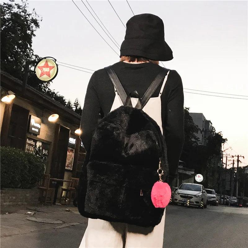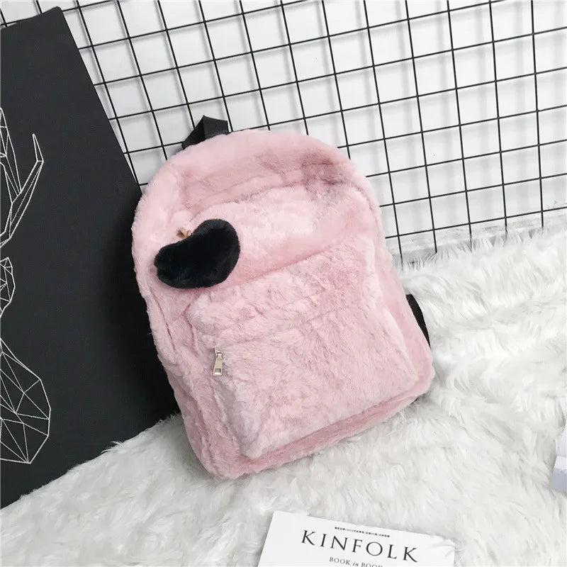 Soft Faux Fur Backpack Winter Plush Rucksack Pink Mochila