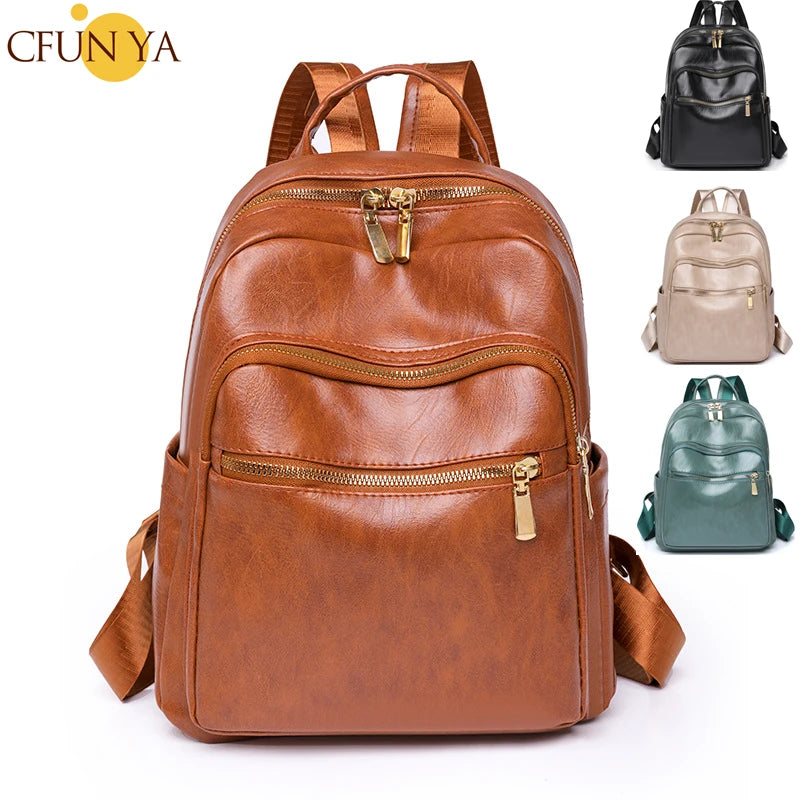 Soft Leather Backpacks Women's Shoulder Bag Casual Travel Ladies Bagpack